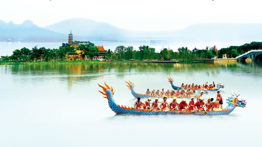龙舟就是船上画着龙的形状或做成龙的形状的船。赛龙舟是中国民间传统水上体育娱乐项目,已流传两千多年,多是在喜庆节日举行。是多人集体划桨竞赛。史书记载,赛龙舟是为了纪念爱国诗人屈原而兴起的。由此可见,赛龙舟不仅是一种体育娱乐活动,更体现出人们心中的爱国主义和集体主义精神。