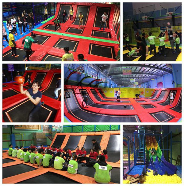 4、教练带领做拉伸运动极限高度、带领队员进行蹦床基本动作,学会基本动作。