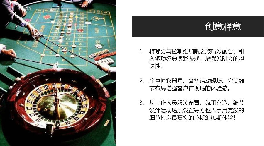 来宾情况和服装要求;现场装饰特别是灯光和装饰材料的运用;