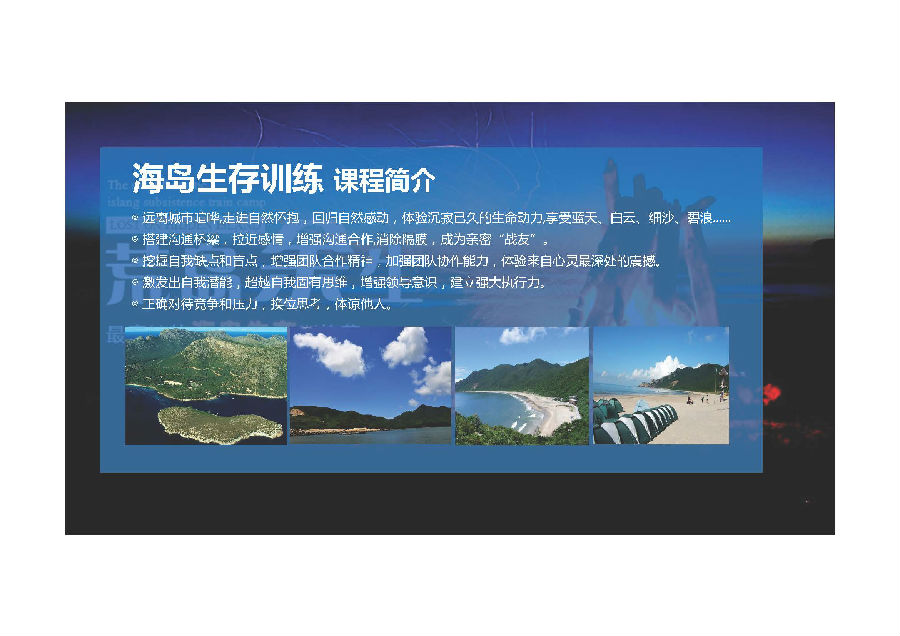 执行力提升:从模拟海岛生存的层面认知团队合作,在情景模拟中感受团队沟通与团队协作,帮助参训者从组织全局发展的角度认知团队发展,提升组织执行力