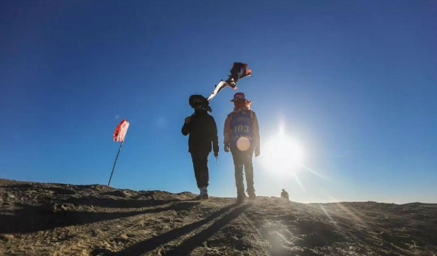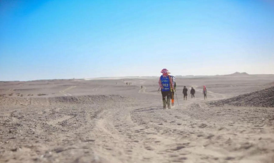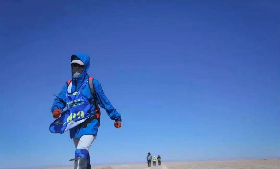 我的心情一下子掉到了冰点。茫茫戈壁,目之所及,仅我一人。我已累到极点,痛到极点,看到90面旗在那么远的地方,我几乎陷入了绝望。