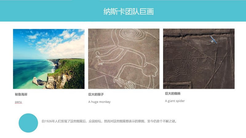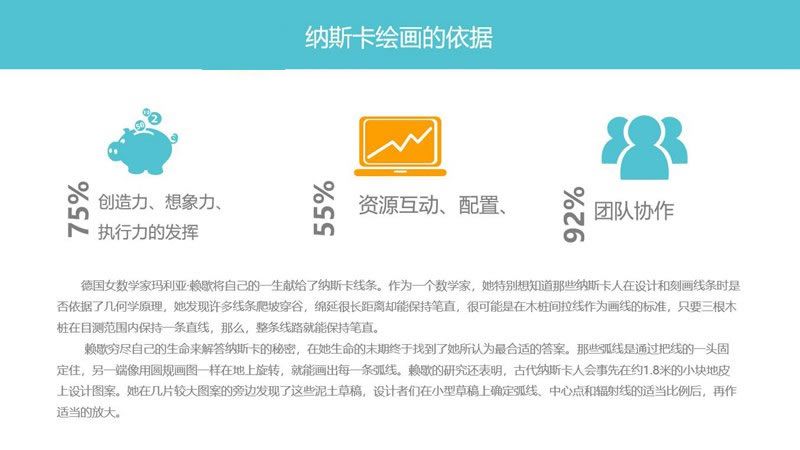 在秘鲁共和国西南沿海有一片广袤的荒原,人称“纳斯卡荒原”。在这片辽阔的原野上,一处令人难以理解的奇迹。每当旭日东升之时,登上纳斯卡山巅,一幅美丽奇异的巨大图画便呈现在你面前。但当太阳升高之后,这些巨画便杳然消失。正因如此,纳斯卡谷地的巨画被称为“世界第八奇迹”。