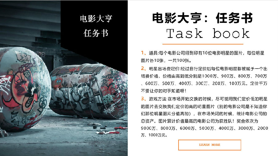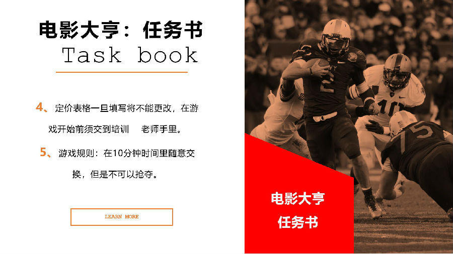 《微电影工坊》引进到团队活动当中,2012年底为某大型外企作为年会增效课程首次亮相,结合“奥斯卡红毯秀”和“奥斯卡颁奖典礼”同时举行,获得客户一致好评。在当年的年会项目中大放异彩,取得巨大成功。目前《微电影工坊》已然成为突破一套成熟的团队体验课程,它必将给您的团队带来不一样的体验。